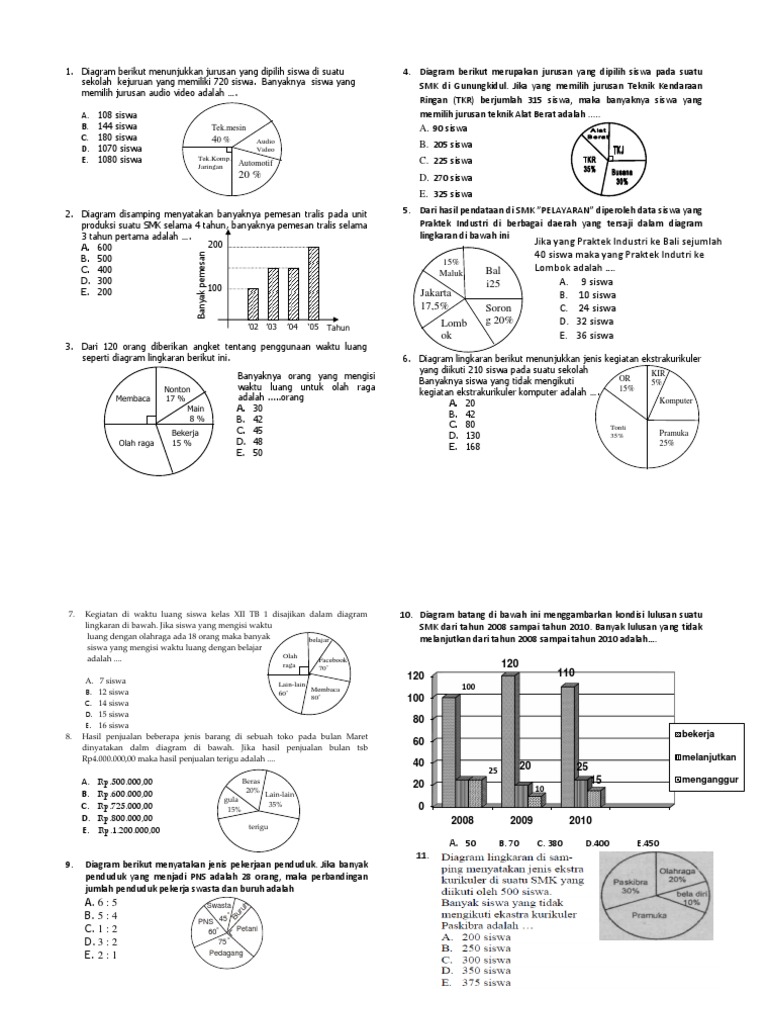 Orang 2 data kegiatan ekstrakulikuler siswa yasd cahaya ilmu disajikan. Apakah diagram batang merupakan diagram lingkaran? Yang telah diterangkan pada pembahasan sebelumnya. Jun 17, 2020 · latihan soal diagram lingkaran. (persen a = nilai a atau derajat a = nilai a) (persen b = nilai b atau derajat b = nilai b) pada data diatas tersebut, dapat dilakukan perbandingan antara data a dengan data b, yaitu :
