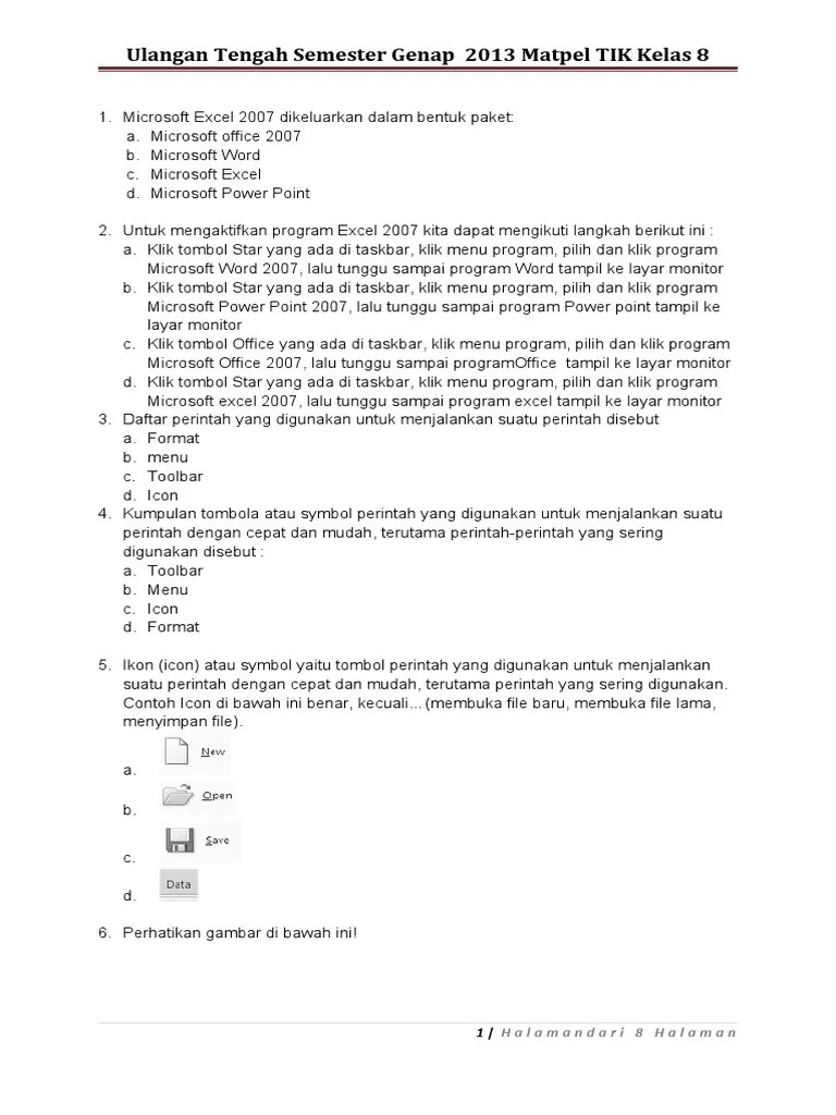 Contoh latihan soal uts / ulangan tengah semester 1 (ganjil) kelas 8 / viii smp / mts mapel tik / teknologi informasi . Latihan soal tik kelas 8 paket 1 from . Pada kesempatan kali ini kakak ingin berbagi beberapa soal yang mungkin akan dibutuhkan adik adik, soal ini merupakan soal dari mata pelajaran tik untuk kelas 8 . Pada kesempatan kali ini akan kami bagikan contoh latihan soal uts / ulangan tengah semester 2 / genap kelas 8 / viii smp / mts mapel tik / . Berikut ini adalah bagian yang terdapat pada toolbar formatting adalah. 1 soal soal latihan tik kelas 8 (microsoft word dan excel) 1. Berikut adalah soal ujian semester 1 tik kelas 8 kurikulum 2013 yang dapat kalian download file soalnya secara lengkap dengan klik link di . Soal uts tik kelas 8 semester 1 beserta kunci jawaban. Simak latihan soal pas/uts tik kelas 8 smp/ mts lengkap dengan kunci jawabannya dalam artikel ini. Soal tik kelas 8 beserta kunci jawaban 1.â â â â â berikut ini yang bukan merupakan cara mengaktifkan microsoft word adalah. Download contoh soal uts 1/ mid semester ganjil mapel tik kelas 8/ viii smp tahun ajaran terbaru file format doc/ word. Klik kanan ikon microsoft word klik open. Soal pts uts tik kelas 8 smp mts semester 1 kurikulum 2013 mariyadi com source: